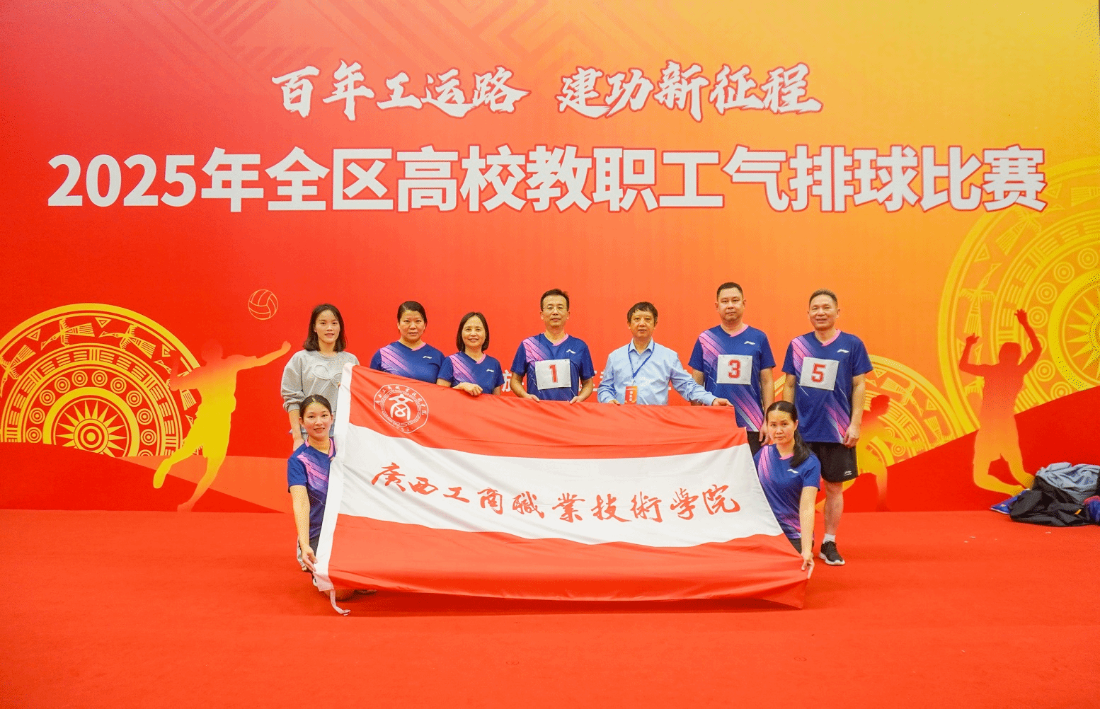 2025年11月7日—9日,由自治区教育工会主办的“百年工运路 建功新征程”2025年全区高校教职工气排球比赛,在广西体育中心综合训练馆隆重举行,全区52所高校的113支队伍,约1100名教职工参赛。学校校长刘进,学校党委副书记、纪委书记韦云凤和副校长陈宁春参加比赛,学校党委副书记、工会主席安仲文担任领队和教练。